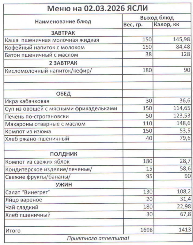 Меню на 02.03.2026 (ясли)