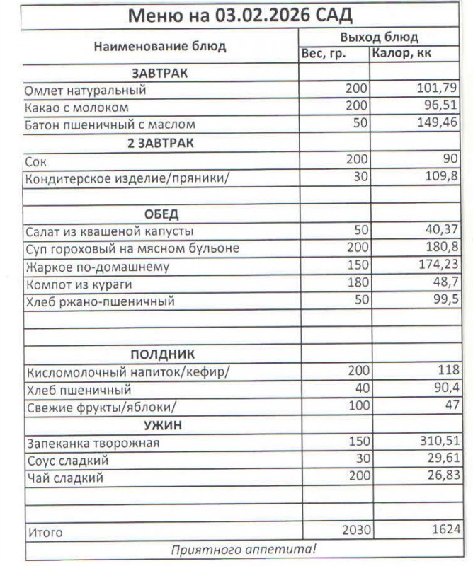 Меню на 03.02.2026 (сад)