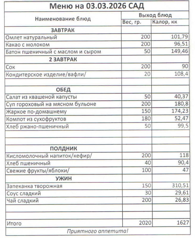 Меню на 03.03.2026 (сад)