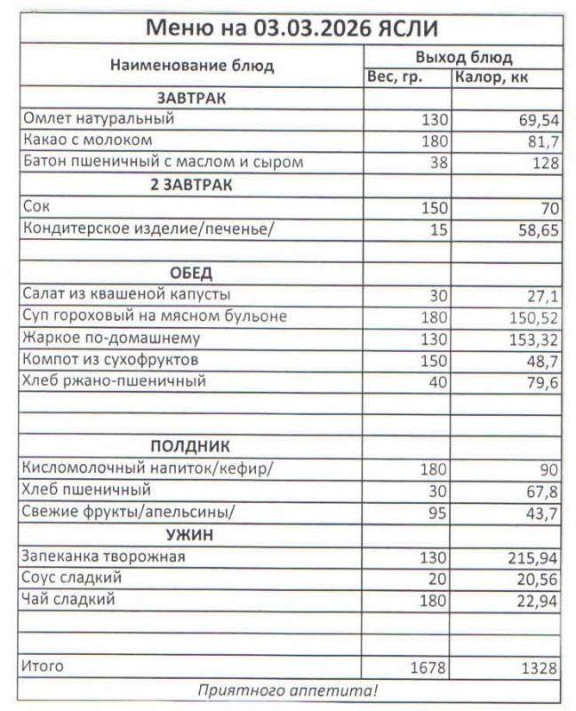 Меню на 03.03.2026 (ясли)