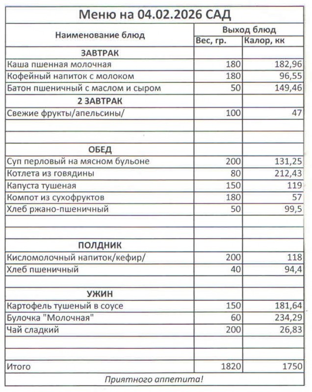 Меню на 04.02.2026 (сад)