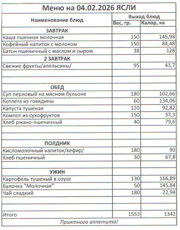 Меню на 04.02.2026 (ясли)