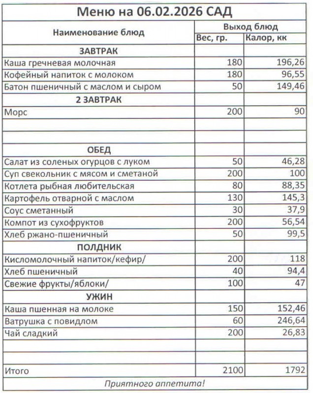 Меню на 06.02.2026 (сад)