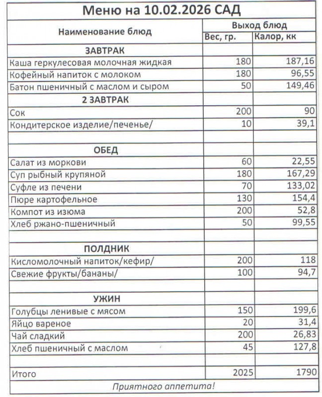 Меню на 10.02.2026 (сад)