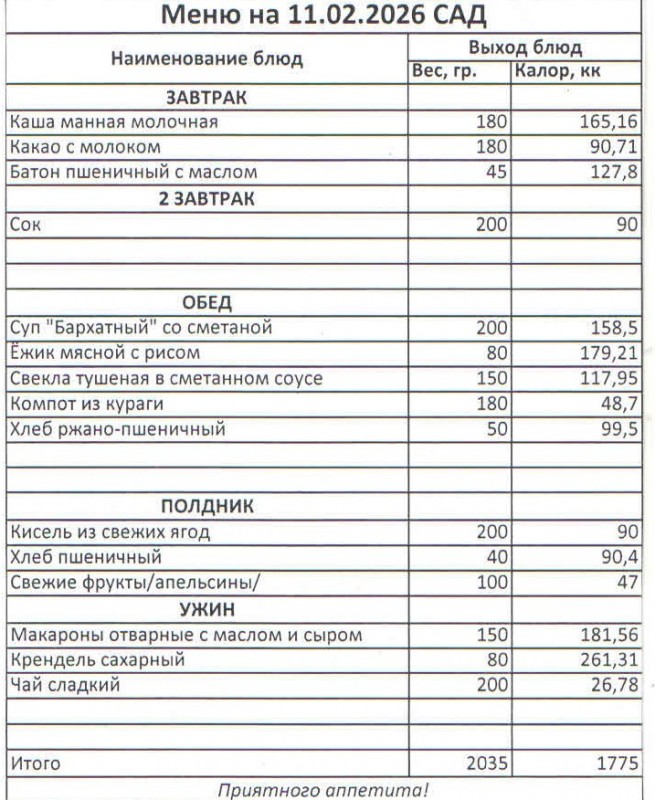 Меню на 11.02.2026 (сад)