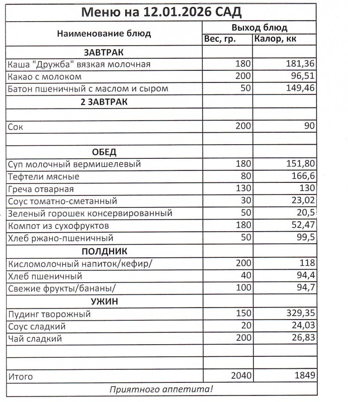 Меню на 12.01.2025 (сад)