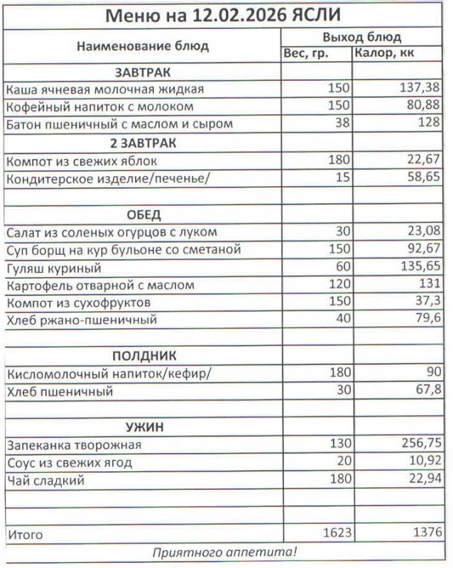 Меню на 12.02.2026 (ясли)
