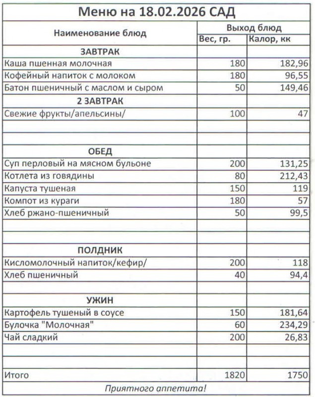 Меню на 18.02.2026 (сад)
