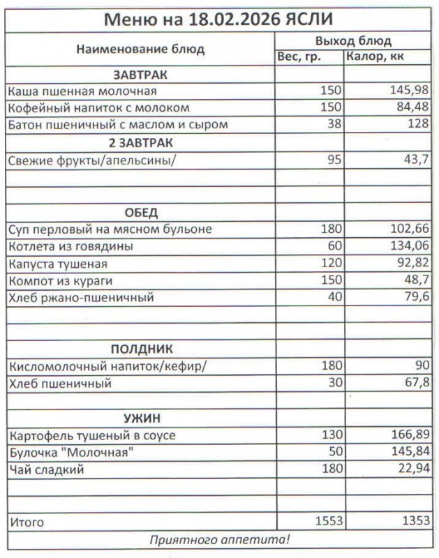 Меню на 18.02.2026 (ясли)