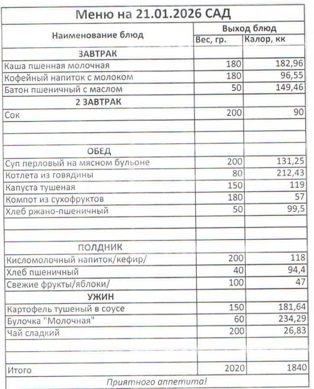 Меню на 21.01.2026 (сад)