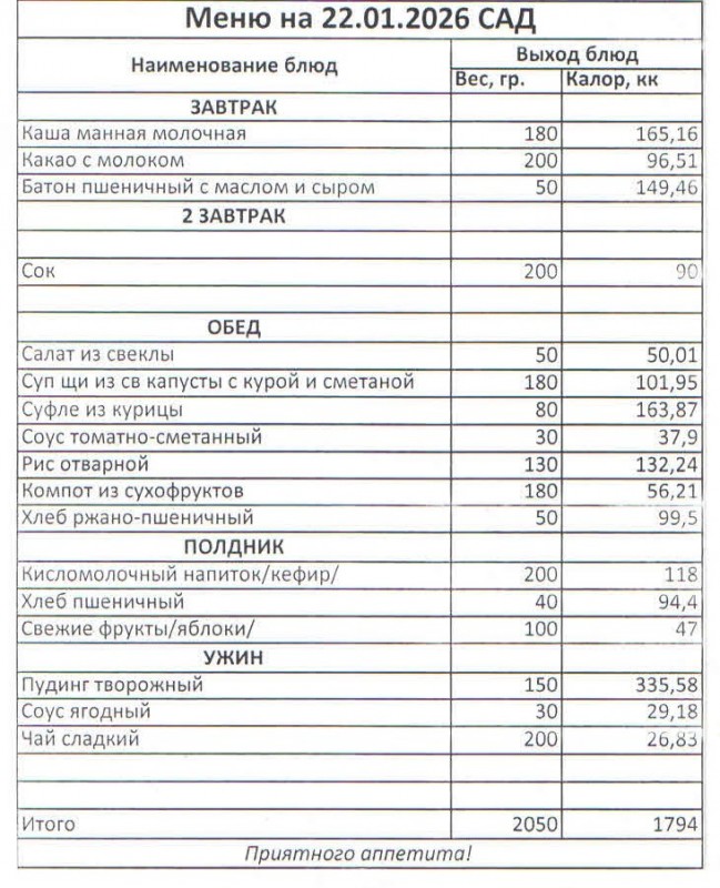 Меню на 22.01.2026 (сад)