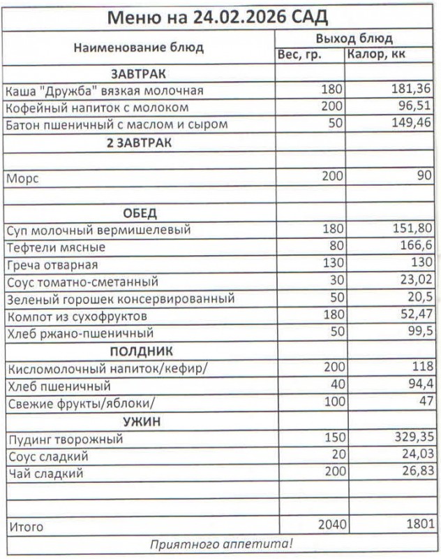 Меню на 24.02.2026 ( сад)