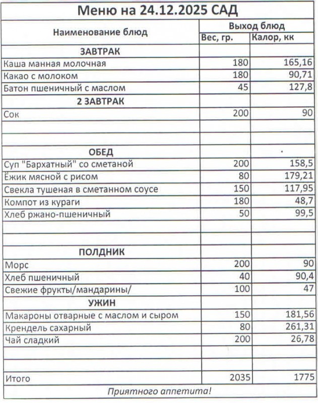 Меню на 24.12.2025 (сад)