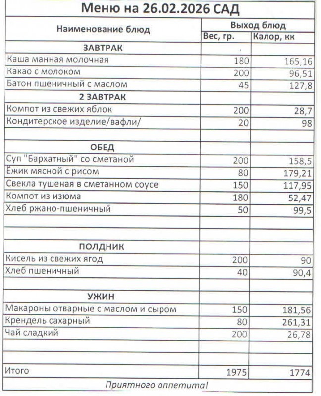Меню на 26.02.2026 (сад)