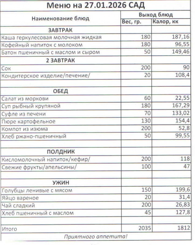 Меню на 27.01.2026 (сад)